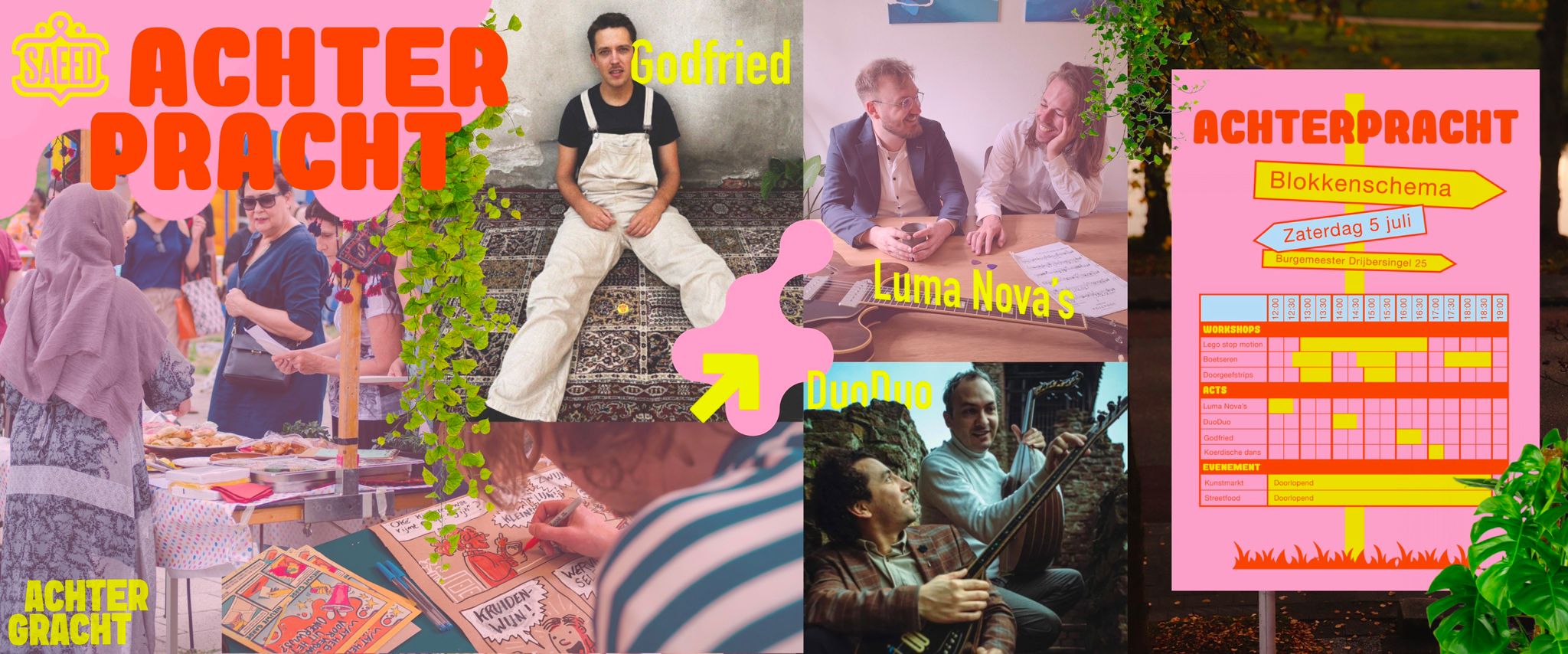 Op zaterdag 5 juli wordt de buurt en de stad uitgenodigd om samen feest te vieren op een unieke locatie: de Achtergracht in het Noorderkwartier. Met het festival Achterpracht presenteren Broedplaats de Achtergracht, Saeed Zwolle en vele lokale makers een bruisende middag vol kunst, muziek en streetfood. Iedereen is welkom!